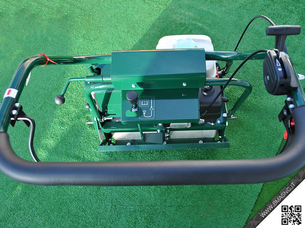 La rasaserba grazie al suo peso, al cilindro elicoidale a 10 lame con frequenza di taglio di 145 tagli per metro, effettua una qualità di taglio indescrivibile. L'utilizzo di una frizione a dischi e di catene per la trasmissione del movimento assicurano la massima durata nel tempo della rasaerba.