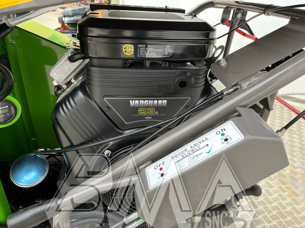- Una apposita leva comanda l'azionamento del rotore di taglio. Due robuste cinghie trapezoidali dentate trasmettono il moto dal motore al rotore.