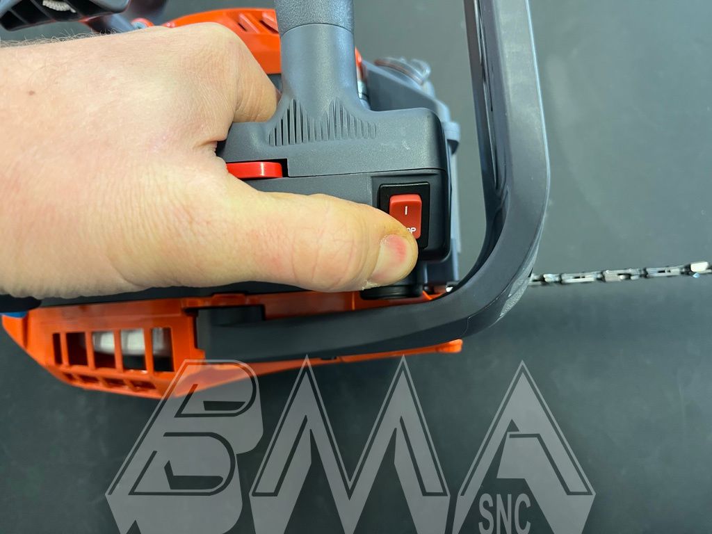 - Il dispositivo "Primer" è ben visibile di facile accessibilità e azionamento intuitivo. Questo dispositivo semplifica l'avviamento a freddo della motosega, agevolando la sua messa in moto dopo ogni rifornimento di carburante e durante periodi prolungati di inattività.