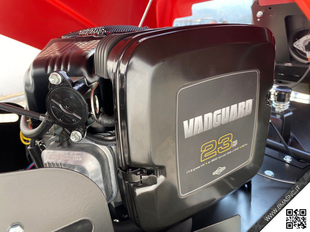- Il motore bicilindrico B&S serie Vanguard V TWIN da 627cc di cilindrata che eroga un potenza di 23hp garantisce affidabilità ed elevate prestazioni, in termini di coppia e potenza erogata in ogni condizione di lavoro anche le più impegnative.