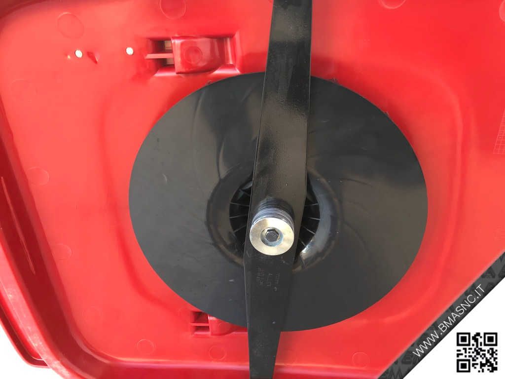 - La regolazione dell'altezza della rasaerba avviene attraverso lo spostamento della lama. Per far questo bisogna svitare il bullone lama centrale e tramite gli spessori selezionare l'altezza desiderata. Si possono avere 4 altezze di taglio. Più la lama sarà alta maggiore sarà l'altezza di taglio e viceversa. L'altezza di taglio massima è di 34 mm mentre la minima 16 mm.
